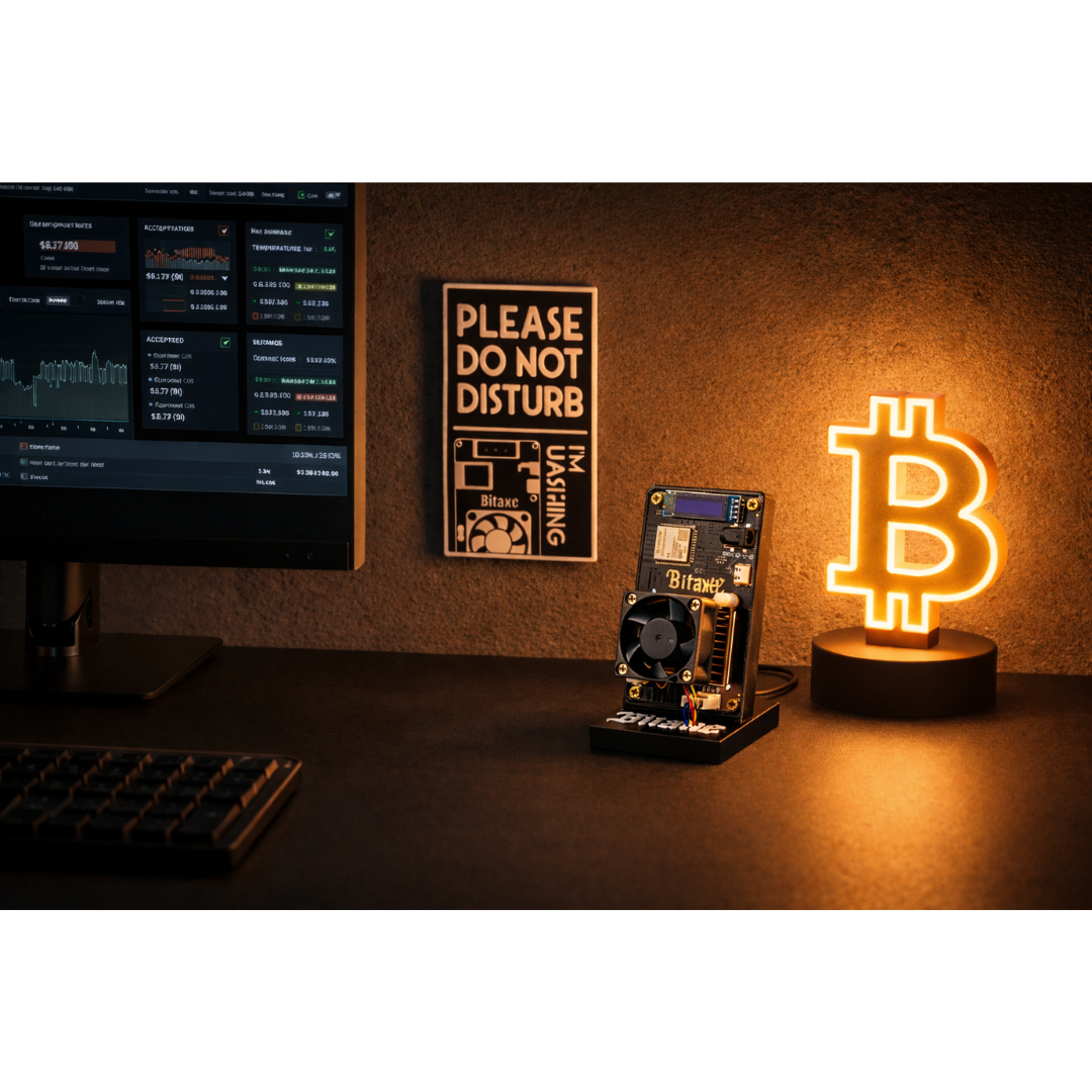 Bring personality to your Bitcoin mining setup with the “Please Do Not Disturb – I’m Hashing” Bitaxe Wall Panel.